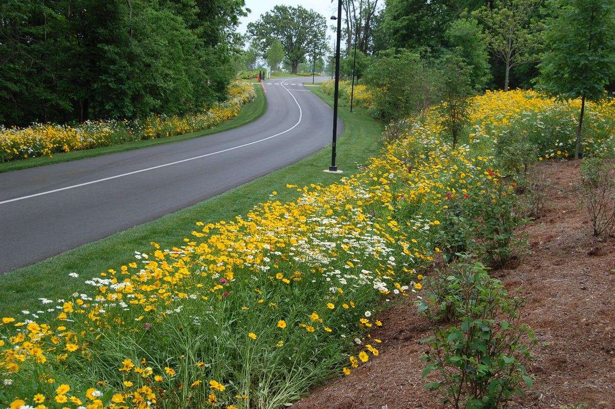 Little Bit Shady wildflower seed mix is a blend of annuals, perennials, and biennials. Some flower seed species are North American natives, some are naturalized flowers (species brought from other continents and naturalized in similar habitats) . Because the mix has been used for some notable high profile projects, and in many landscapes across North America, many people find many uses for the Little Bit Shady wildflower mix. Crystal Bridges Museum of American Art uses this shady seed mix for driveway approaches, and these flowers enhance beautification in their outdoor exhibits where part shade presides.